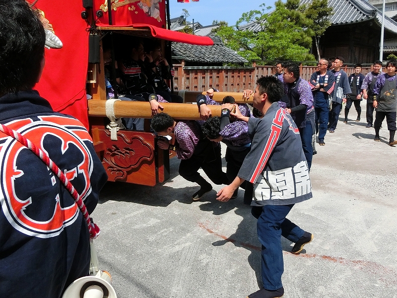 上半田地区の御車も通る地区境を曳きます。