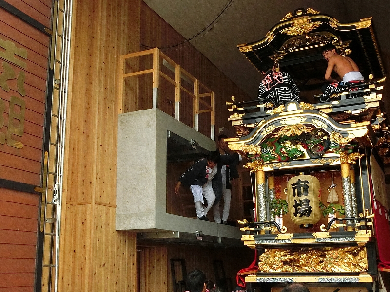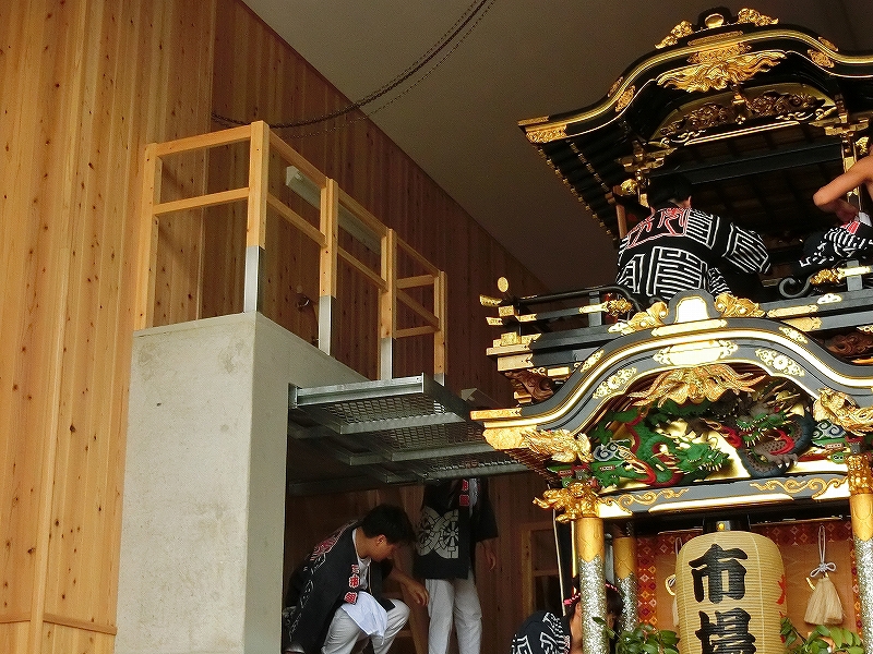 スライドさせるとさらに足場が飛び出し、山車とのやり取りが容易になります。