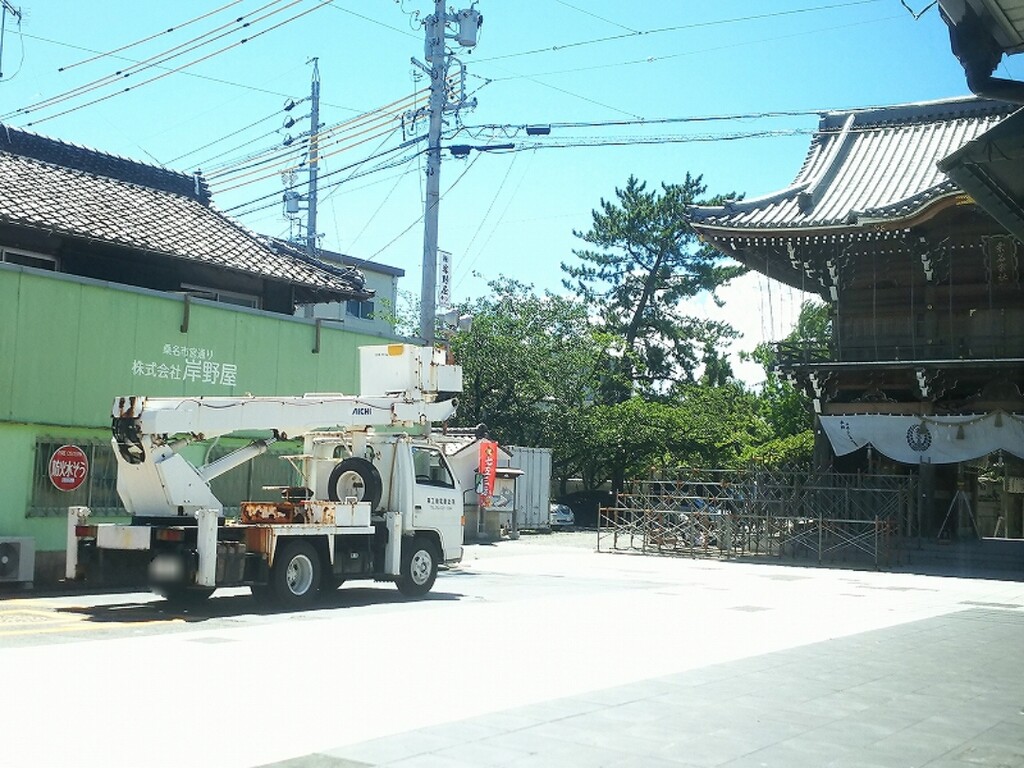 桑名宗社楼門前では桟敷席が組み上げられ、宮通では献燈が飾られます。