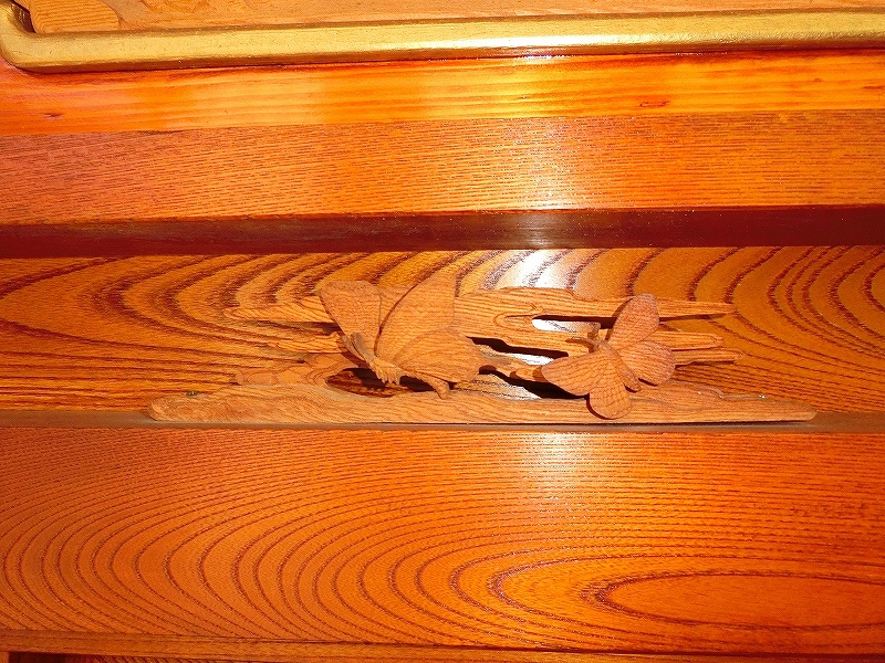 雲板欄間(正面)は桜で、昭和56年 森双鶴師の作。