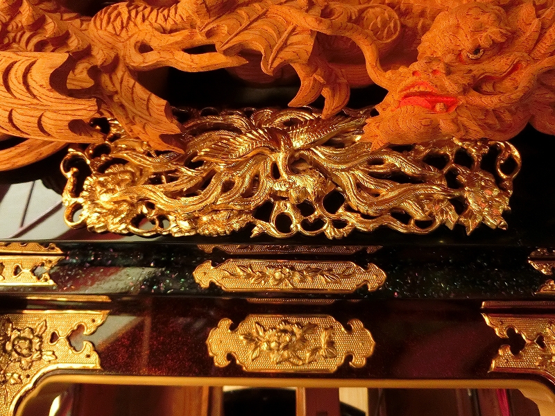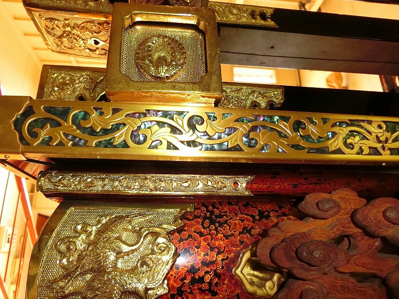 青貝を施した化粧板の上にも、透かし彫りの錺金具を施す豪華さです。