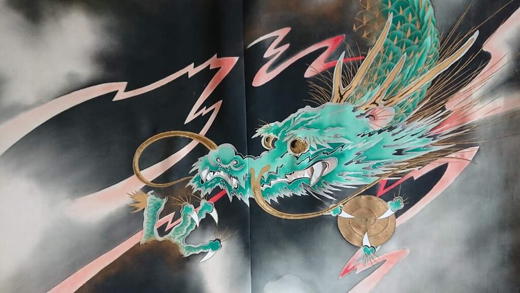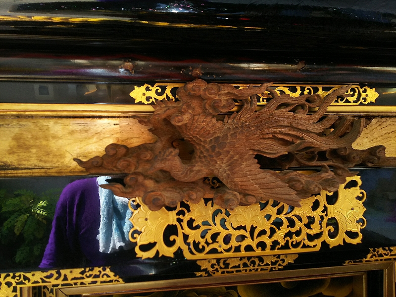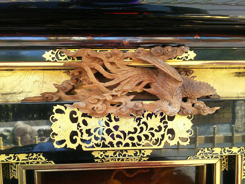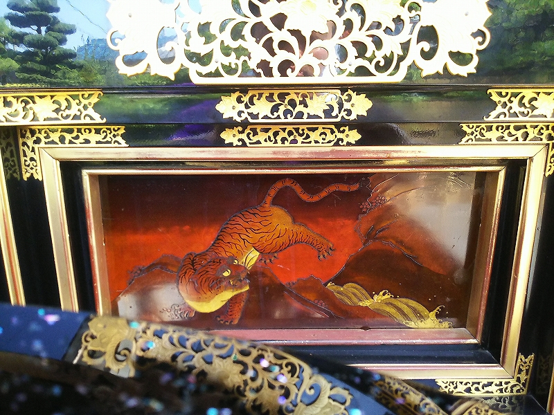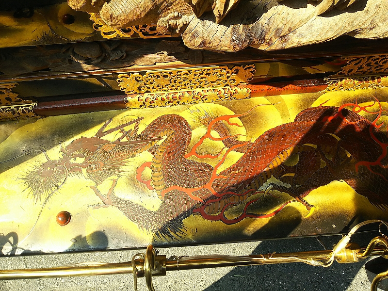 縁場板は金象嵌蒔絵の龍です。