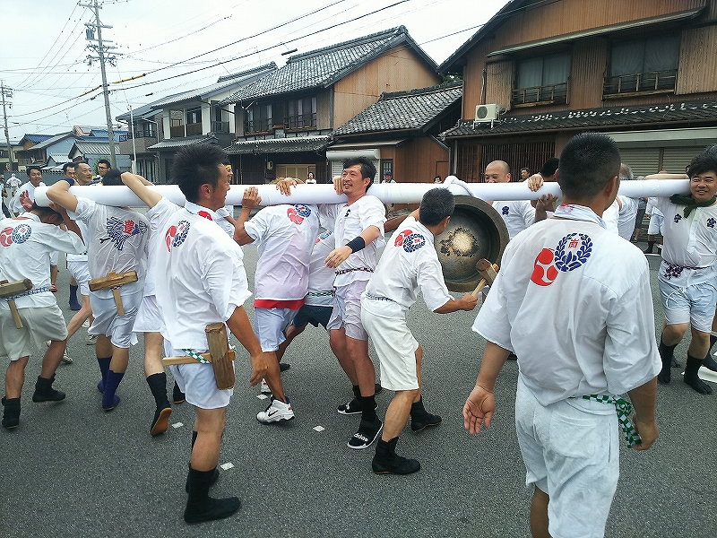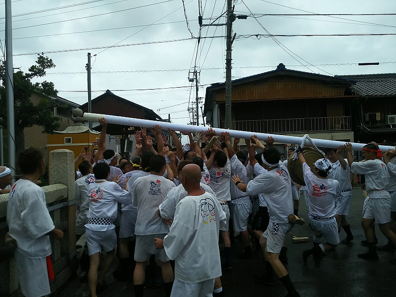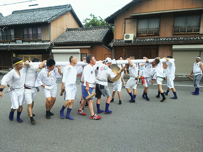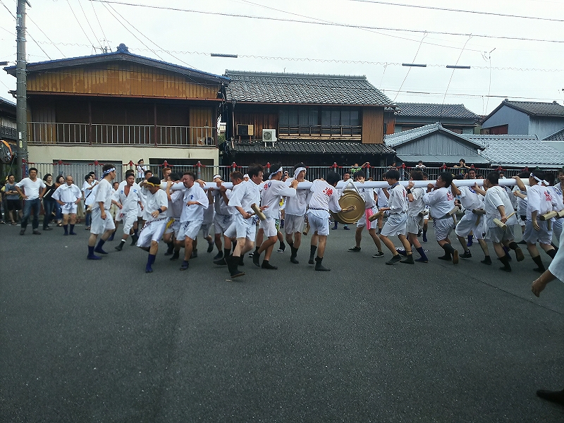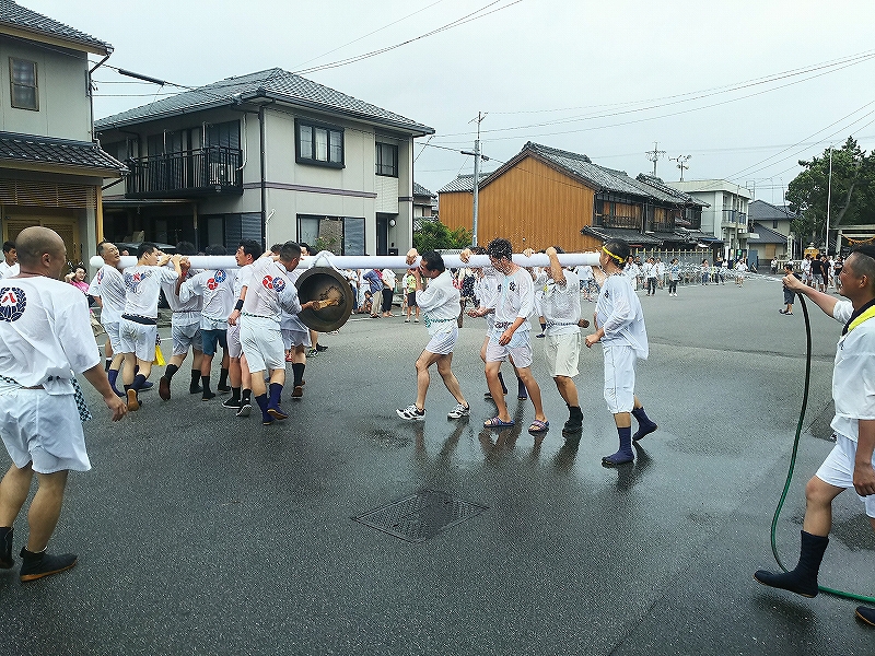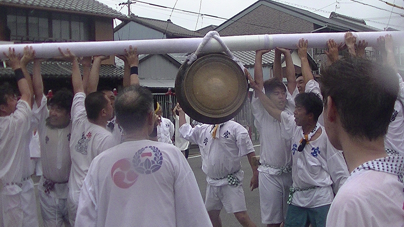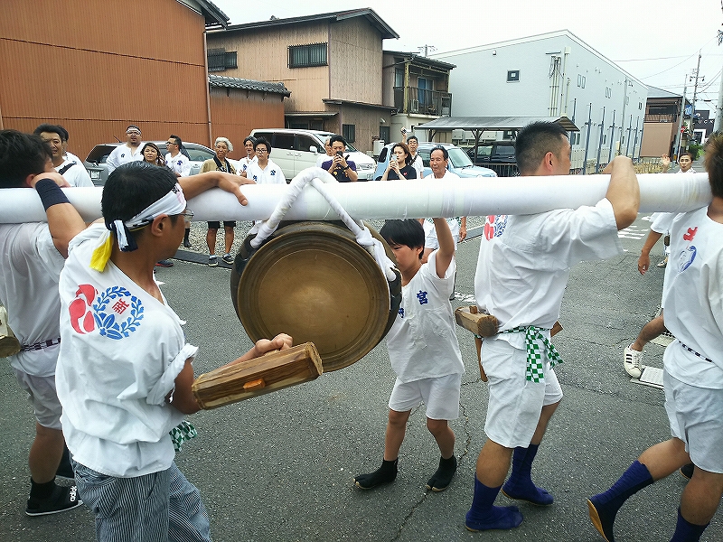 聞いてみると、風が強かったので練りは中止になりましたが、大鉦の奉納は行うとの事でした。