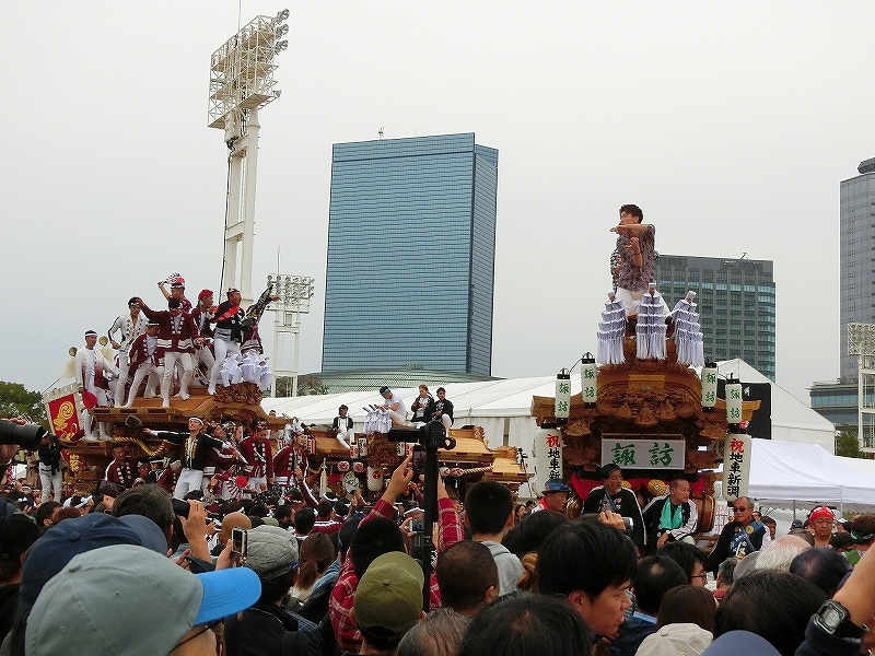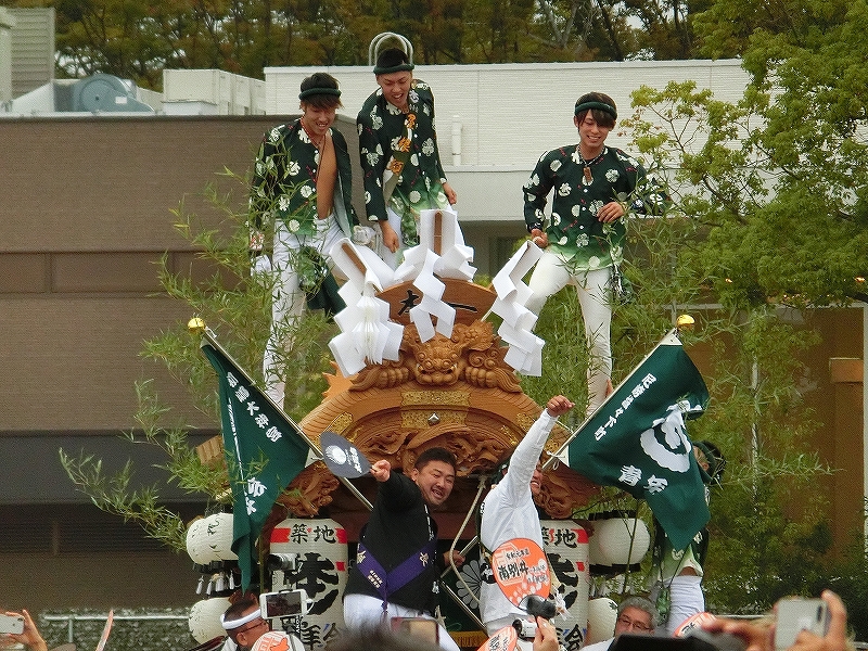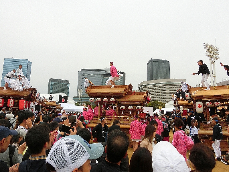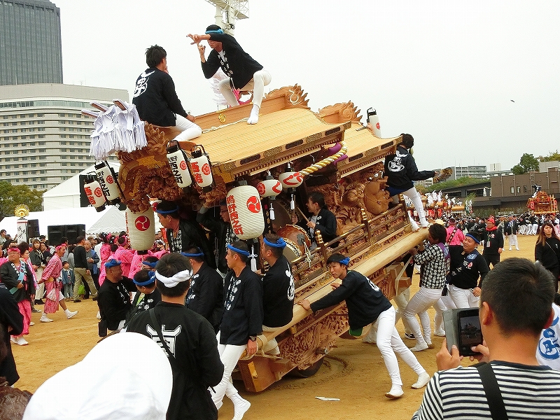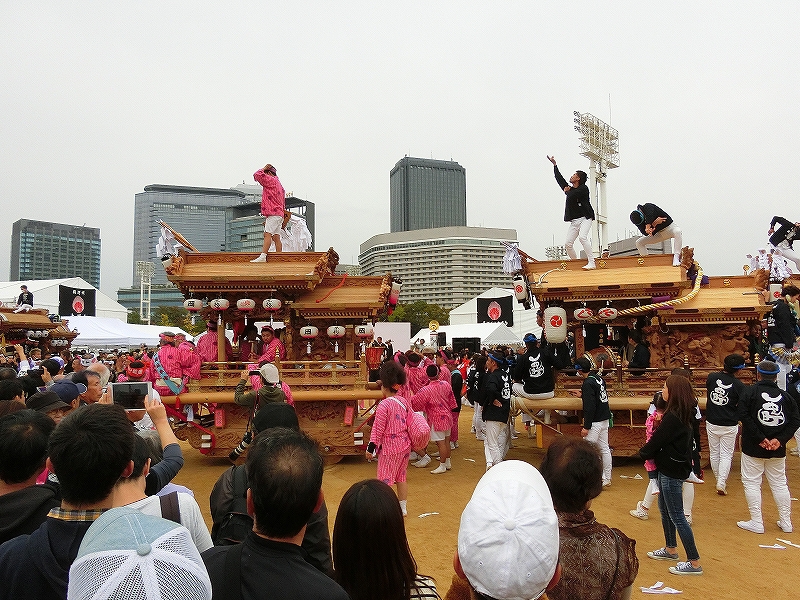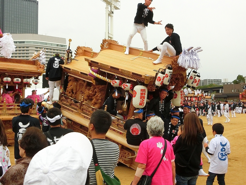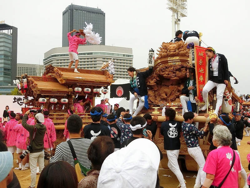 '19 大阪市 地車in大阪城2019⑬ 二〇二〇年水無月廿七日 コメント数:0 コメント カテゴリ:上だんじり大阪府 by 風神雷神 11/3 ハ組の地車紹介パフォーマンスの続きです!地車パフォーマンスが終わる頃、岡が育和に近づきました。育和に向かって、差し上げます。そして、縦並びになりました。近づいてかち合い!?そうです、育和地車は泉大津市出屋敷町旧地車、岡地車は泉大津市上市旧地車なので往古を偲び、かち合い風の寄せ合いが行われました。灰塚は、差し上げたまま進んで行きます。鴫野西之町は回しています。これでハ組は終了です。最後はニ組です。ニ組は、中川、西脇組、鴫野永田町、諏訪、鴫野天王田、南別井、馬場町、築地本一の8台です。南別井は、横しゃくりで進んできました。扇状に広がって整列しました。そして差し上げます。 【お願い】 皆様のクリック(応援)がランキングに反映されます。 私の見学に向かう原動力ともなりますので、ご協力の程よろしくお願いいたします! (有効カウント1日1回のみ) ↓↓↓ にほんブログ村 にほんブログ村 YouTubeチャンネル登録もよろしくお願いいたします! ↓↓↓石取祭・上げ馬神事・名古屋型山車・知多型山車・犬山型車山・だんじり祭り 拍手もジャンジャンしちゃってください!! ↓↓ 「上だんじり」カテゴリの最新記事 < 前の記事次の記事 > コメント コメントフォーム 名前 コメント 記事の評価 リセット リセット 顔 星 情報を記憶 コメントを投稿する