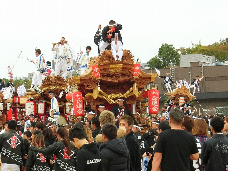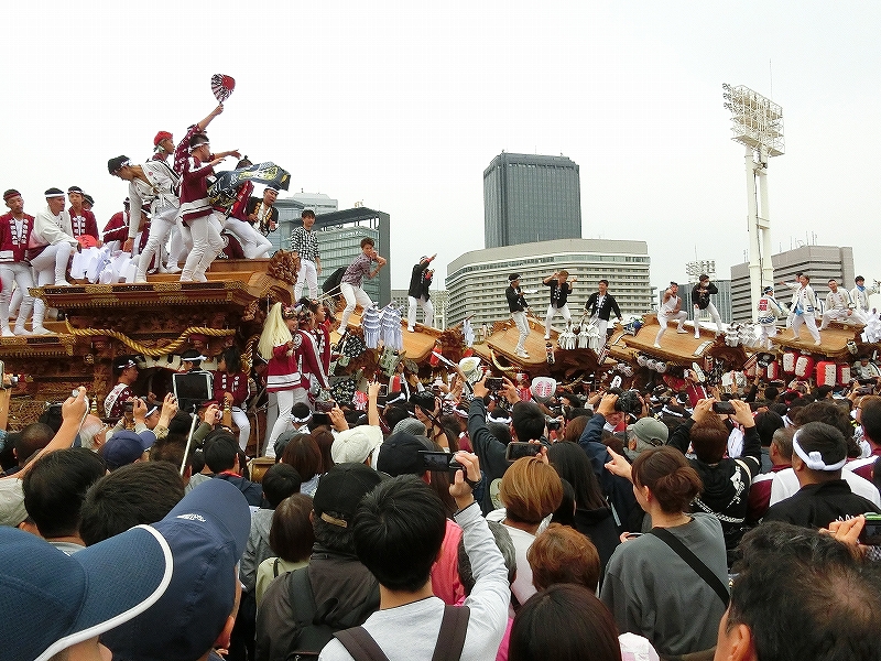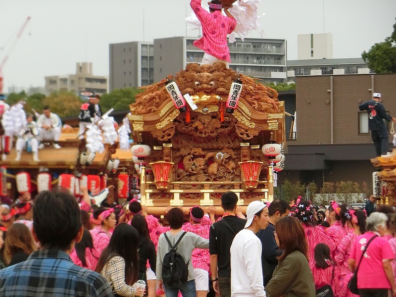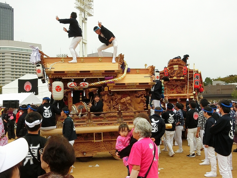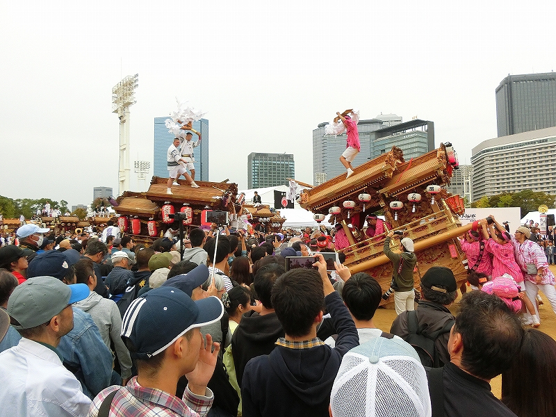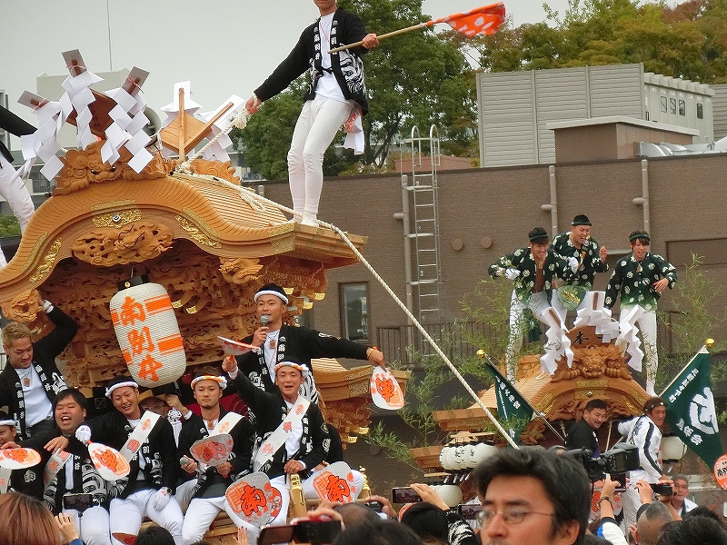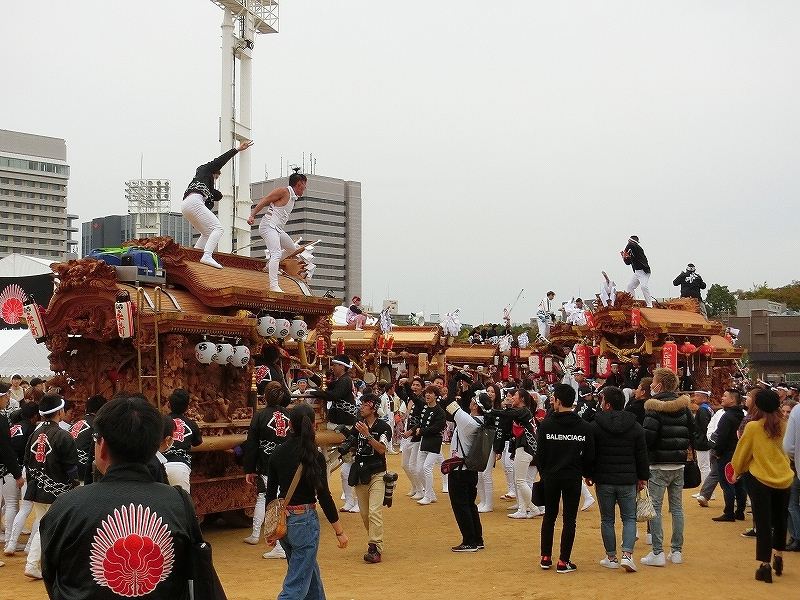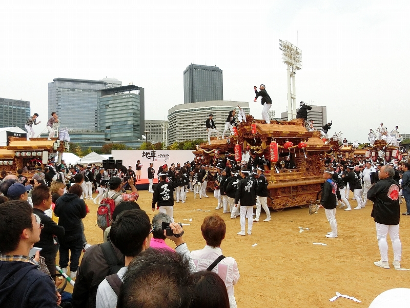'19 大阪市 地車in大阪城2019⑬ 二〇二〇年水無月廿七日 コメント数:0 コメント カテゴリ:上だんじり大阪府 by 風神雷神 11/3 ハ組の地車紹介パフォーマンスの続きです!地車パフォーマンスが終わる頃、岡が育和に近づきました。育和に向かって、差し上げます。そして、縦並びになりました。近づいてかち合い!?そうです、育和地車は泉大津市出屋敷町旧地車、岡地車は泉大津市上市旧地車なので往古を偲び、かち合い風の寄せ合いが行われました。灰塚は、差し上げたまま進んで行きます。鴫野西之町は回しています。これでハ組は終了です。最後はニ組です。ニ組は、中川、西脇組、鴫野永田町、諏訪、鴫野天王田、南別井、馬場町、築地本一の8台です。南別井は、横しゃくりで進んできました。扇状に広がって整列しました。そして差し上げます。 【お願い】 皆様のクリック(応援)がランキングに反映されます。 私の見学に向かう原動力ともなりますので、ご協力の程よろしくお願いいたします! (有効カウント1日1回のみ) ↓↓↓ にほんブログ村 にほんブログ村 YouTubeチャンネル登録もよろしくお願いいたします! ↓↓↓石取祭・上げ馬神事・名古屋型山車・知多型山車・犬山型車山・だんじり祭り 拍手もジャンジャンしちゃってください!! ↓↓ 「上だんじり」カテゴリの最新記事 < 前の記事次の記事 > コメント コメントフォーム 名前 コメント 記事の評価 リセット リセット 顔 星 情報を記憶 コメントを投稿する