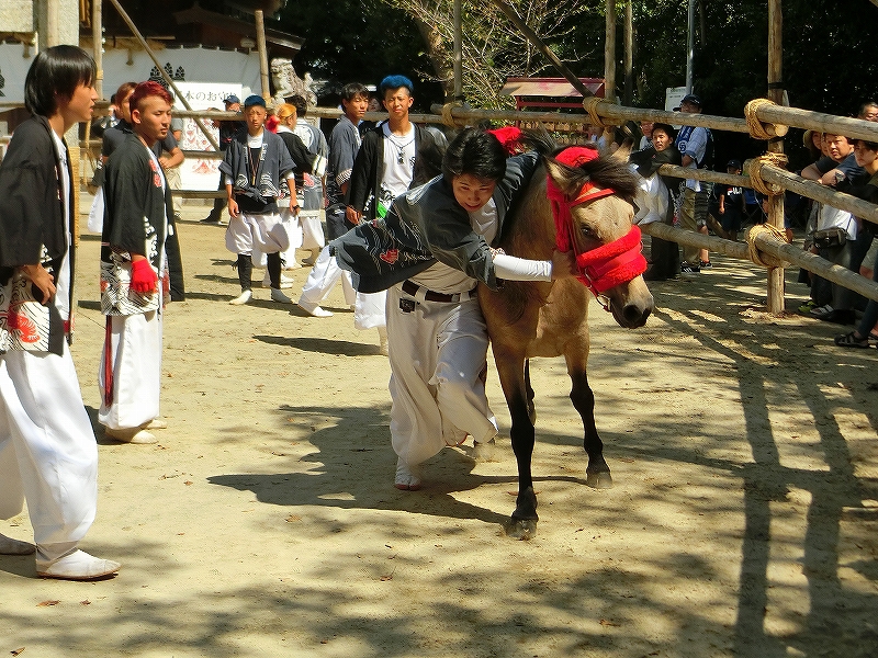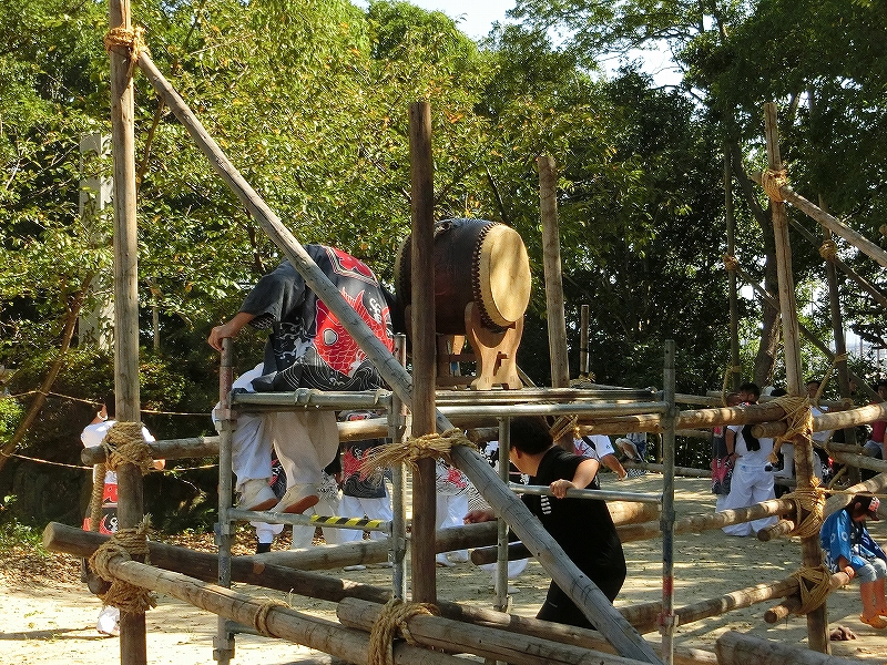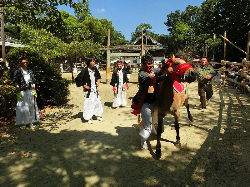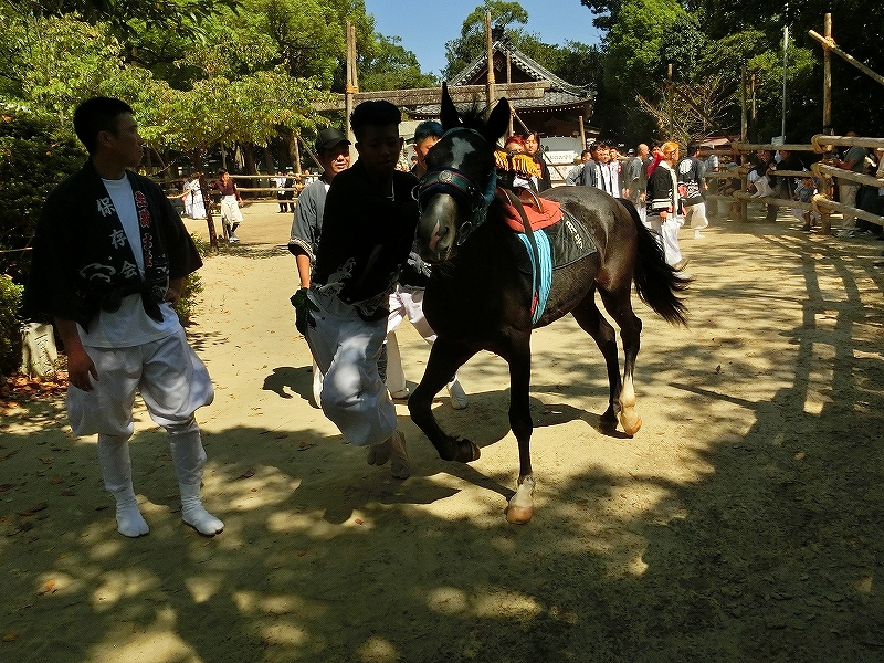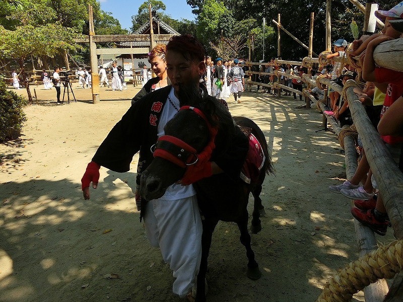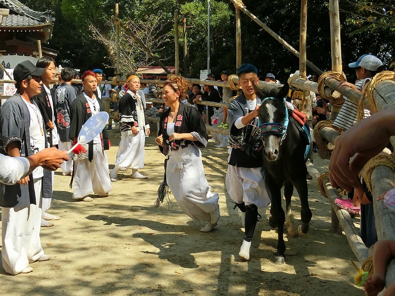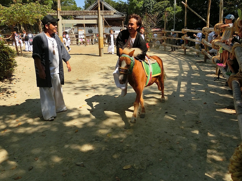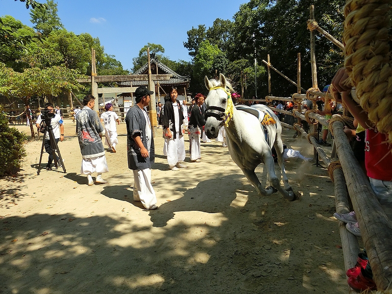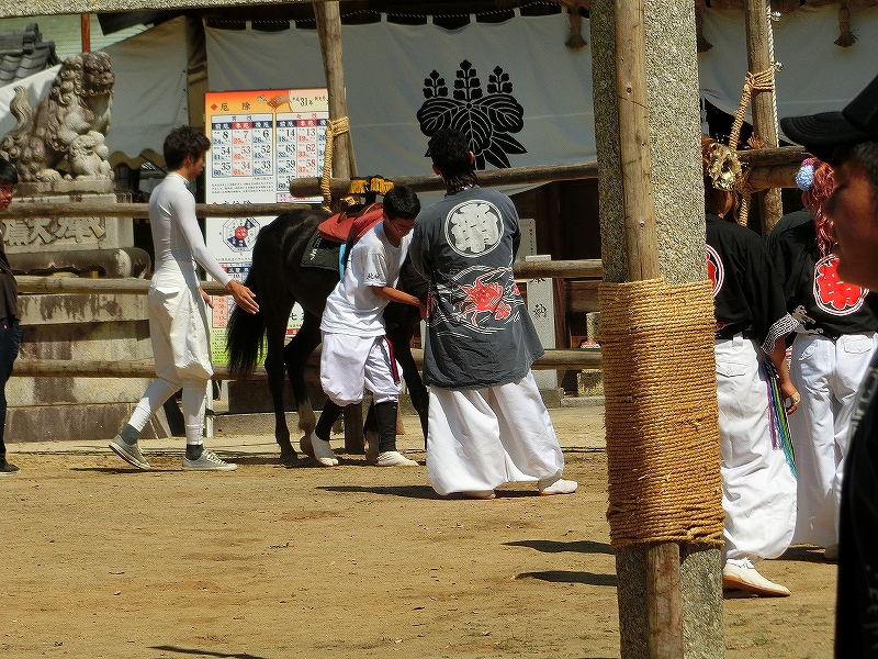 入退場口には太鼓が置かれ、太鼓が叩かれると祭馬は退場します。