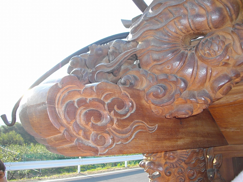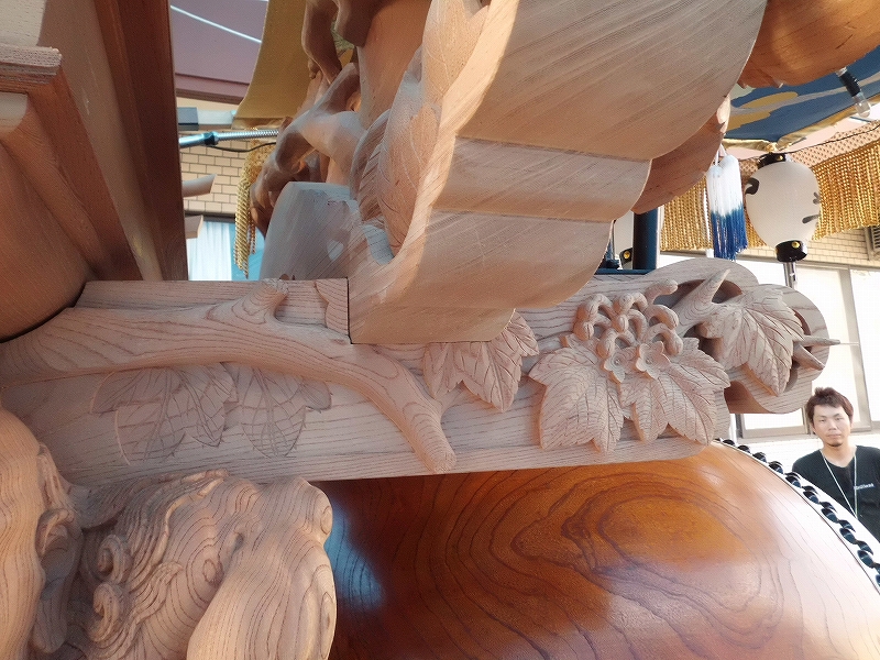 祭車新造時では簡易的なものを取り付け、後に本彫刻を取り付ける場合や