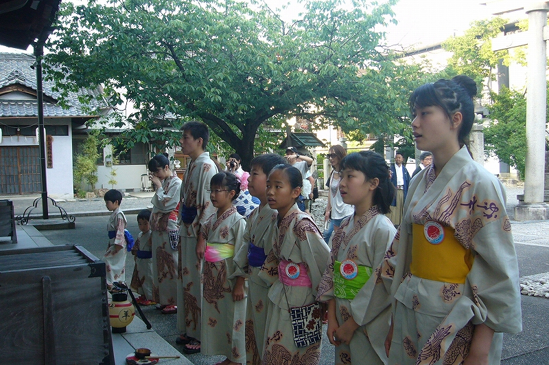 叩出の夕方、子供たちはお勝っつぁんと称して提燈を持ち、祭唄を唄いながら町内を回り、神社へ参拝します。