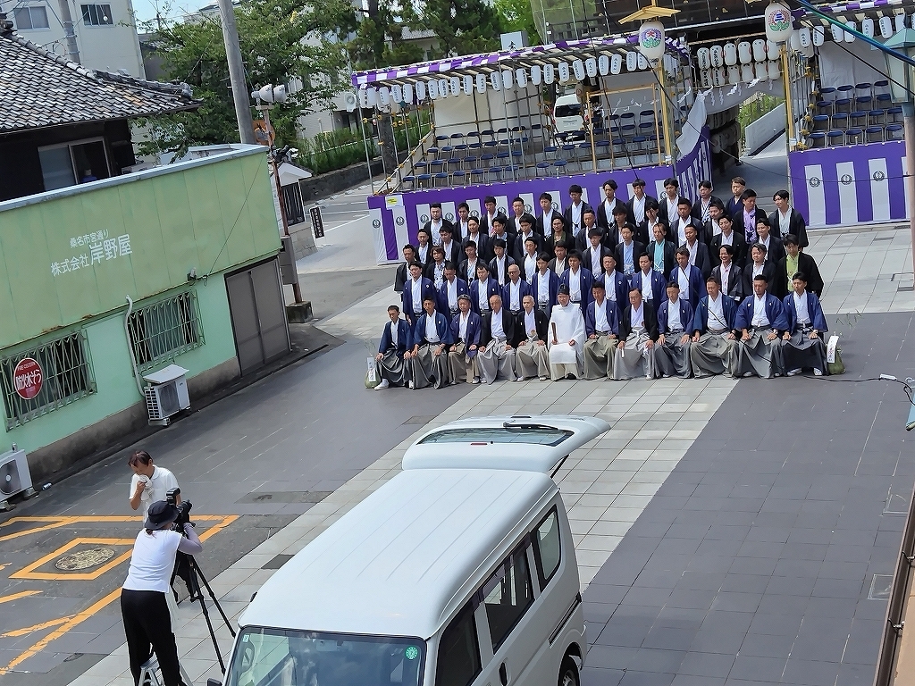 共に写真撮影などが行われ、青年会長は直会で前日のトラブル報告や注意喚起などが青年連盟より行われます。