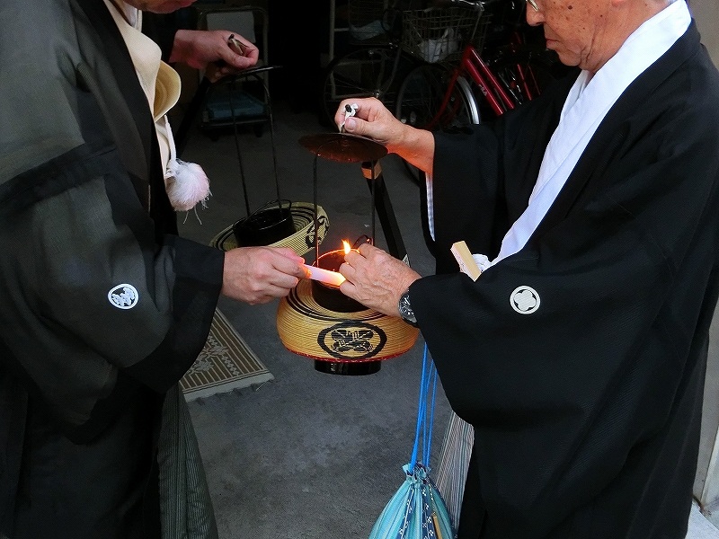 この時、斎火を各組祭事委員がいただいて、各町祭事長から副祭事長、青年会長などの役提燈に火が分けられます。