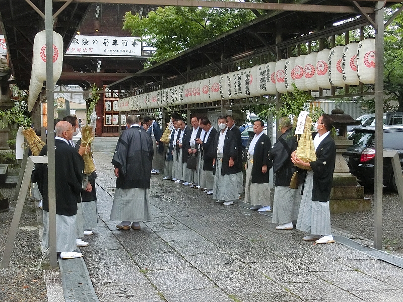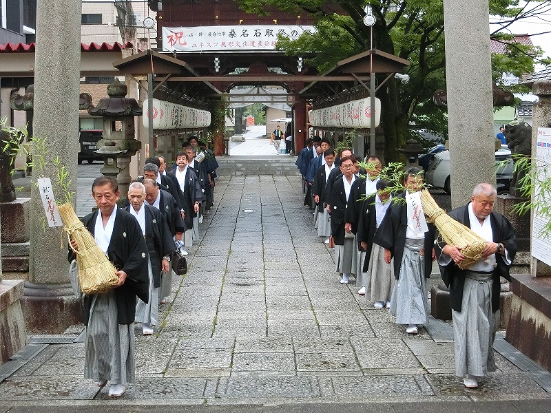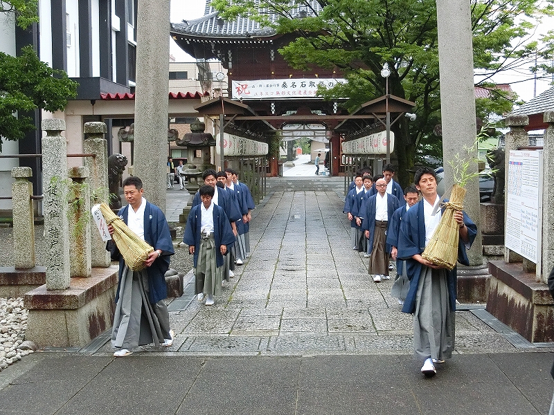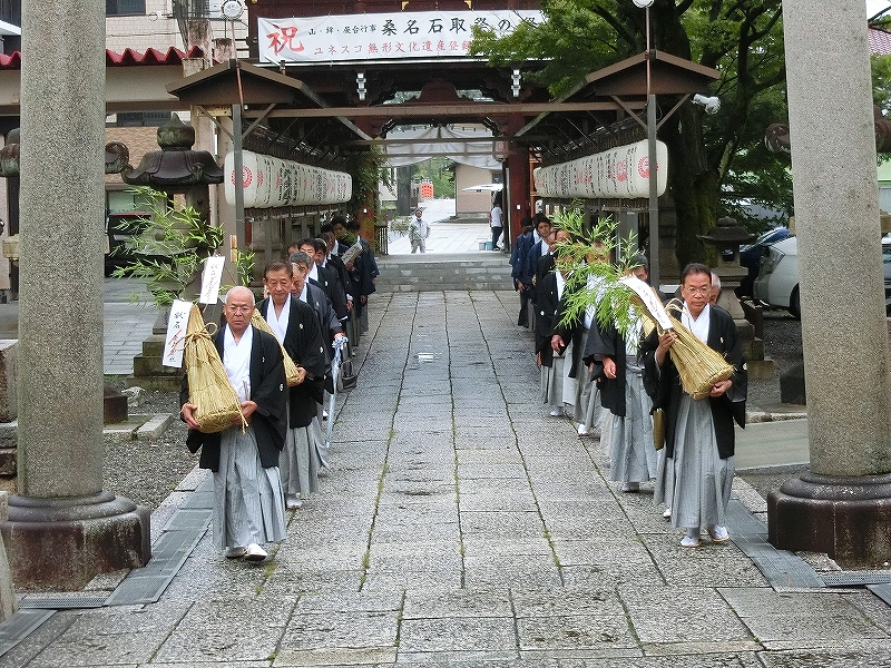 宮司を先頭に、献石俵を持って昇殿します。