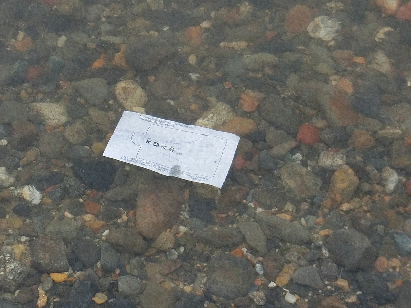 川の中に手を突っ込み、連盟さんは石拾い。