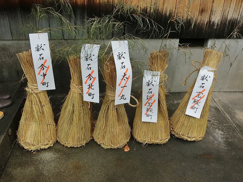 宝町も氏子なので献石を行いますが、こちらは町名(新宝殿町、宝殿町)で1俵ずつ奉納されています。