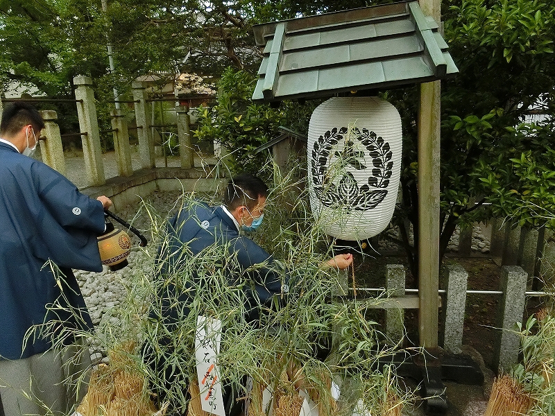 午後4時、拝殿では第八組祭事長と宝町祭事長が神事に参列していました。