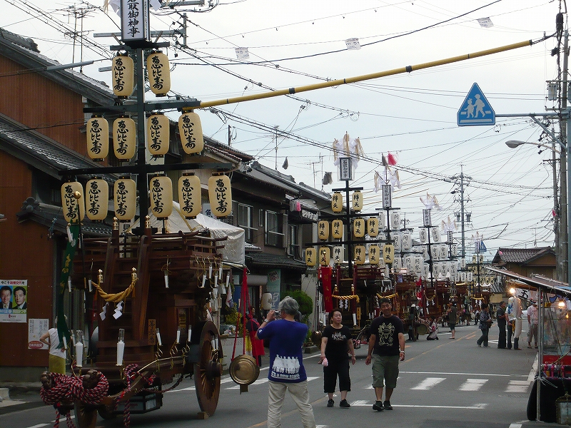 8/15 試楽。祭車は、午後6時までに開勢町に東向きで整列します。