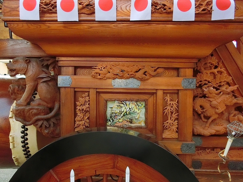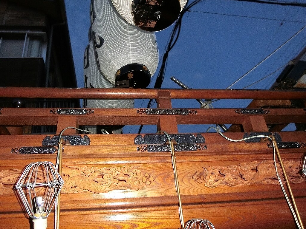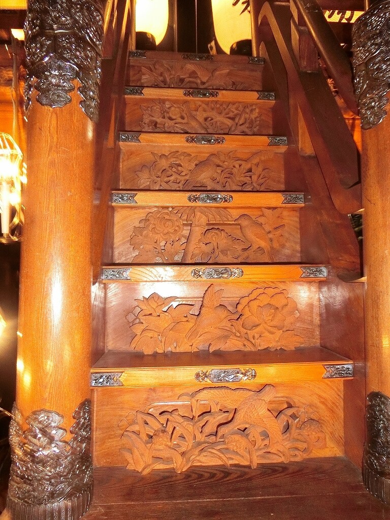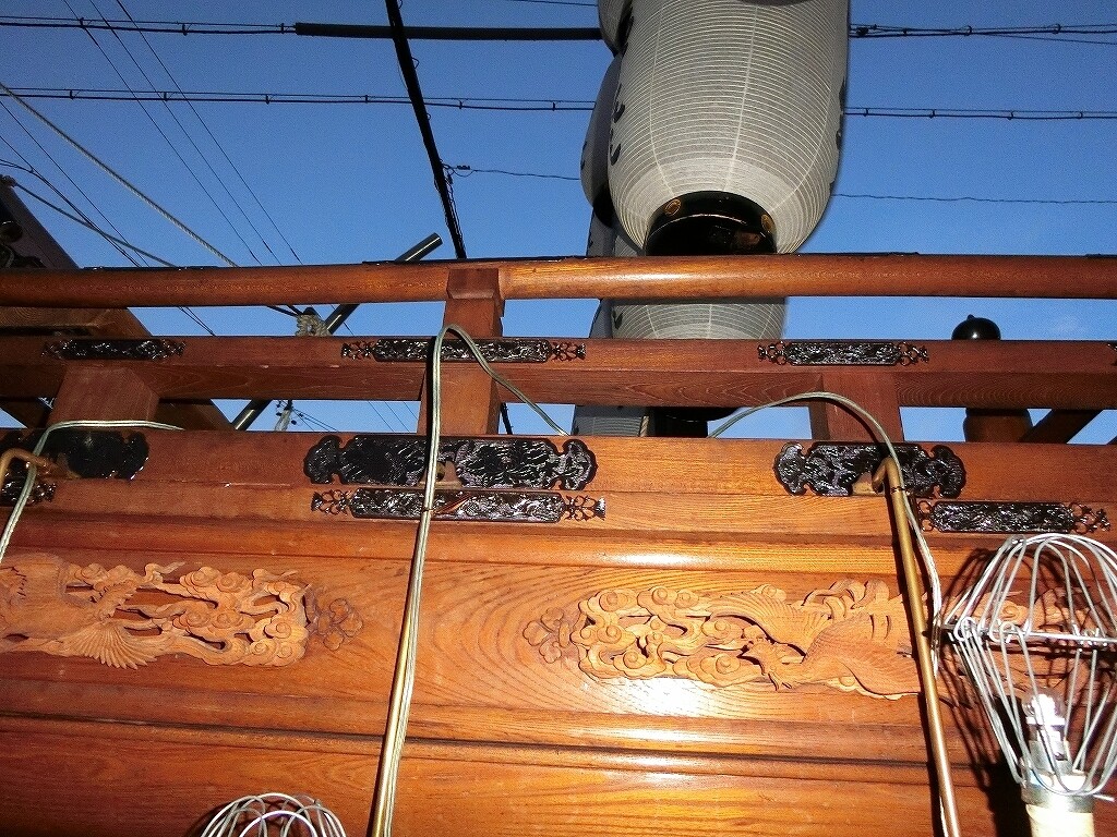 第一期は擬宝珠柱、第二期は太鼓掛両端と長押に錺金具が入りました。