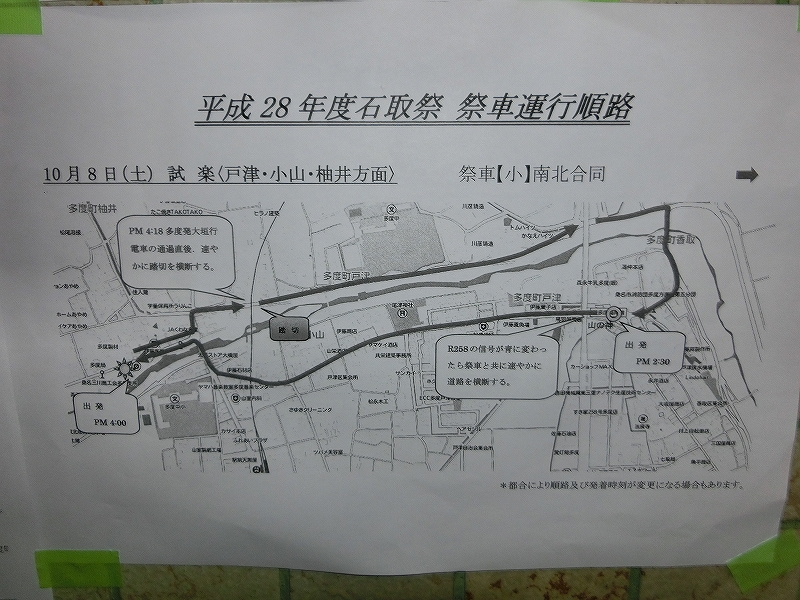 香取交差点東側で南北両祭車が再び合い、その後は青年会宿まで一緒に曳き廻します。