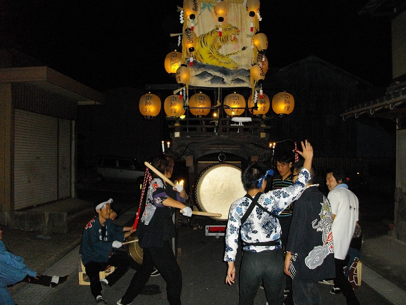 昼に村内を曳き廻す地区と夜に曳き廻す地区があります。