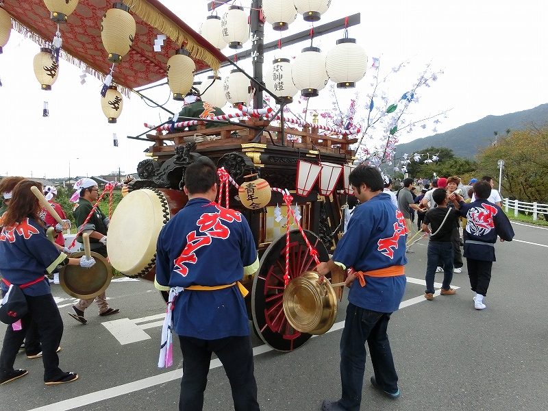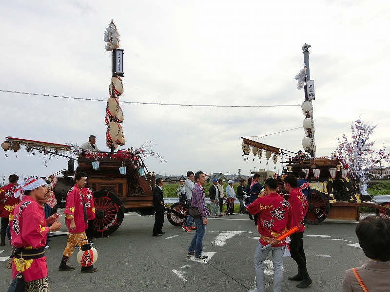 多度北小学校東側で東福永、西福永、東平賀の3台が曳き込みを待ちます。