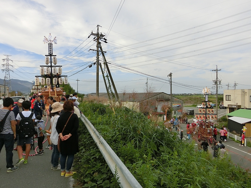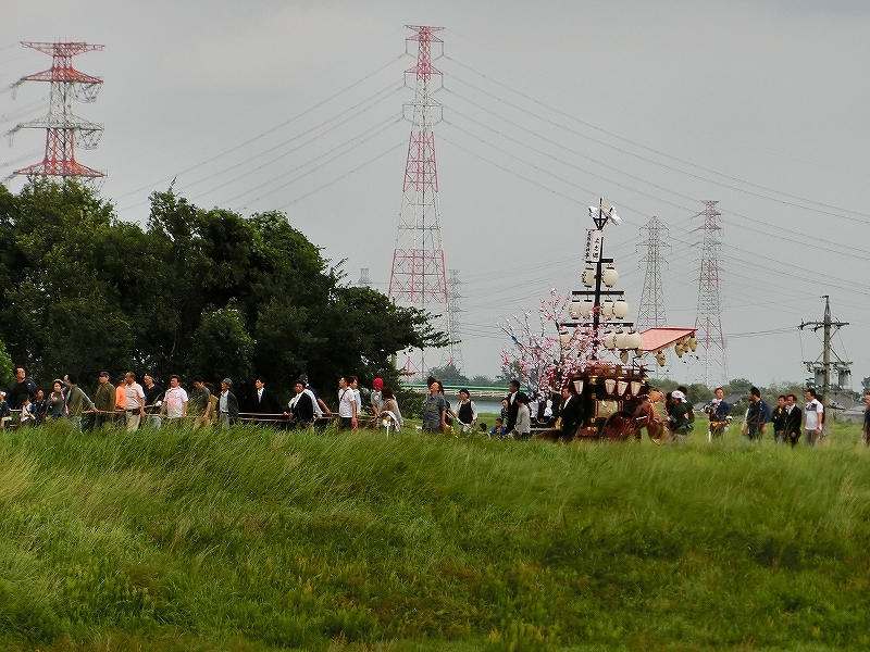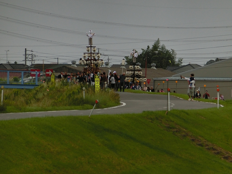 香取が香取橋を渡り、内母神社前に曳き込んだ後、上之郷が定位置に着きます。